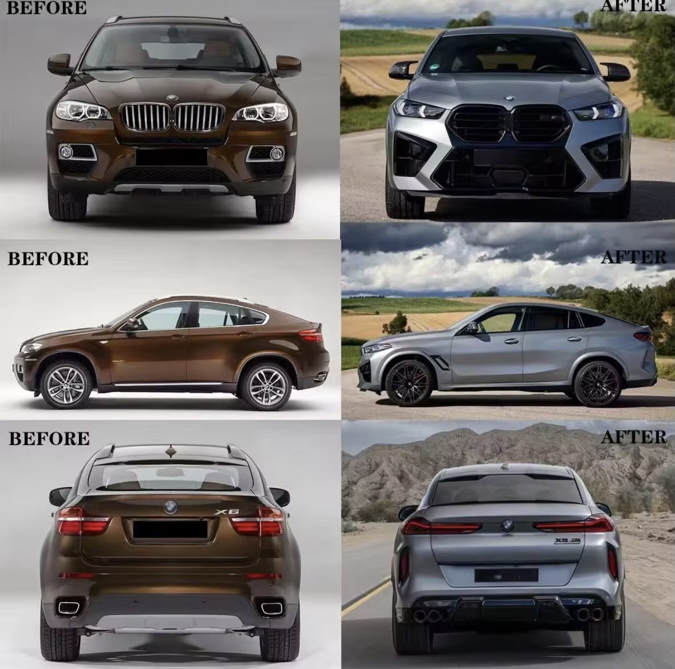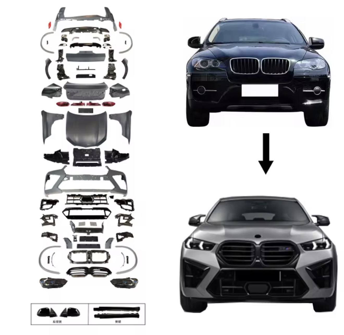 รับแปลงโฉม X6 E71 OLD to NEW UPGRADE G06 LCI X6M STYLE BODY KIT 2009-2014 BUMPER LIGHT LAMP LIP SPOILER HOOD SIDE X6 E71 CAR FACELIFT PARTS