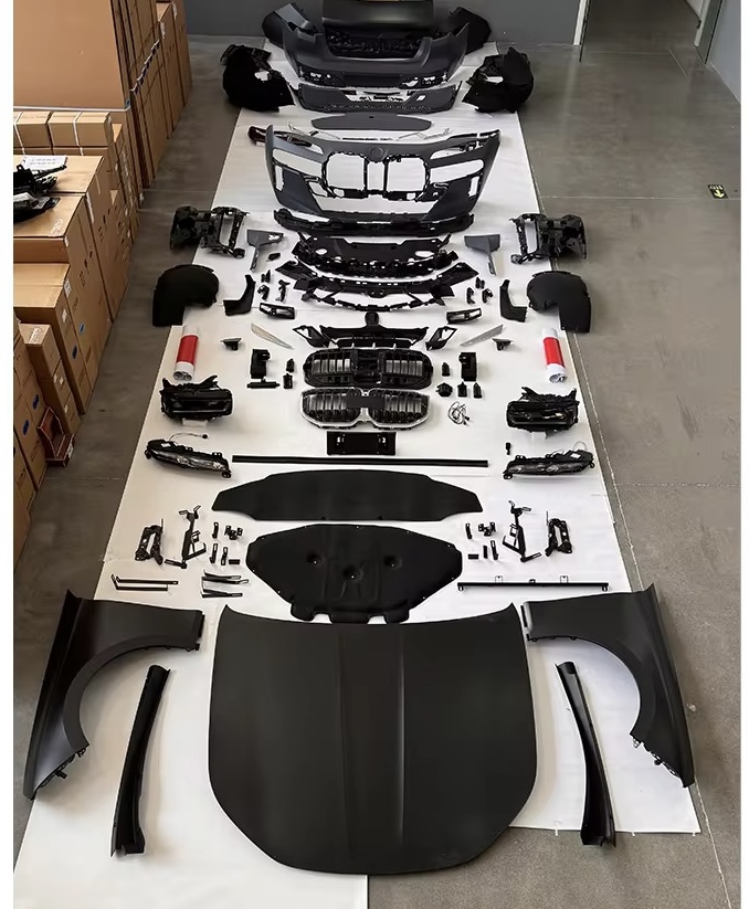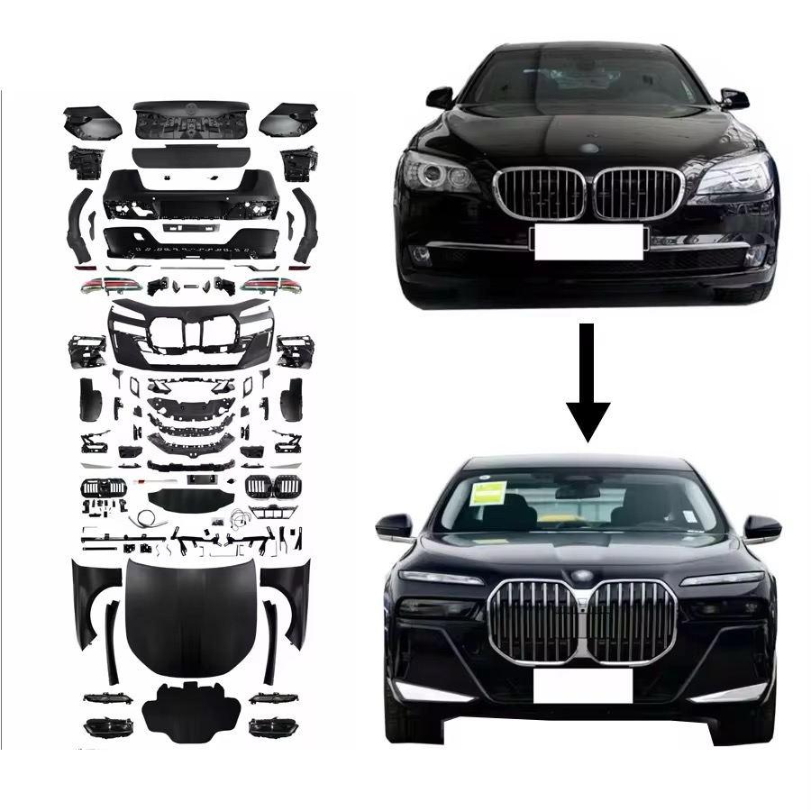 รับแปลงโฉม BMW Series 7 F02 to G70 SPORT BODY KIT 2009-2015 FRONT BUMPER HEAD LIGHT SIDE SKIRT FACELIFT 7 SERIES F02 to G70 2023 STYLE CAR BUMPERS