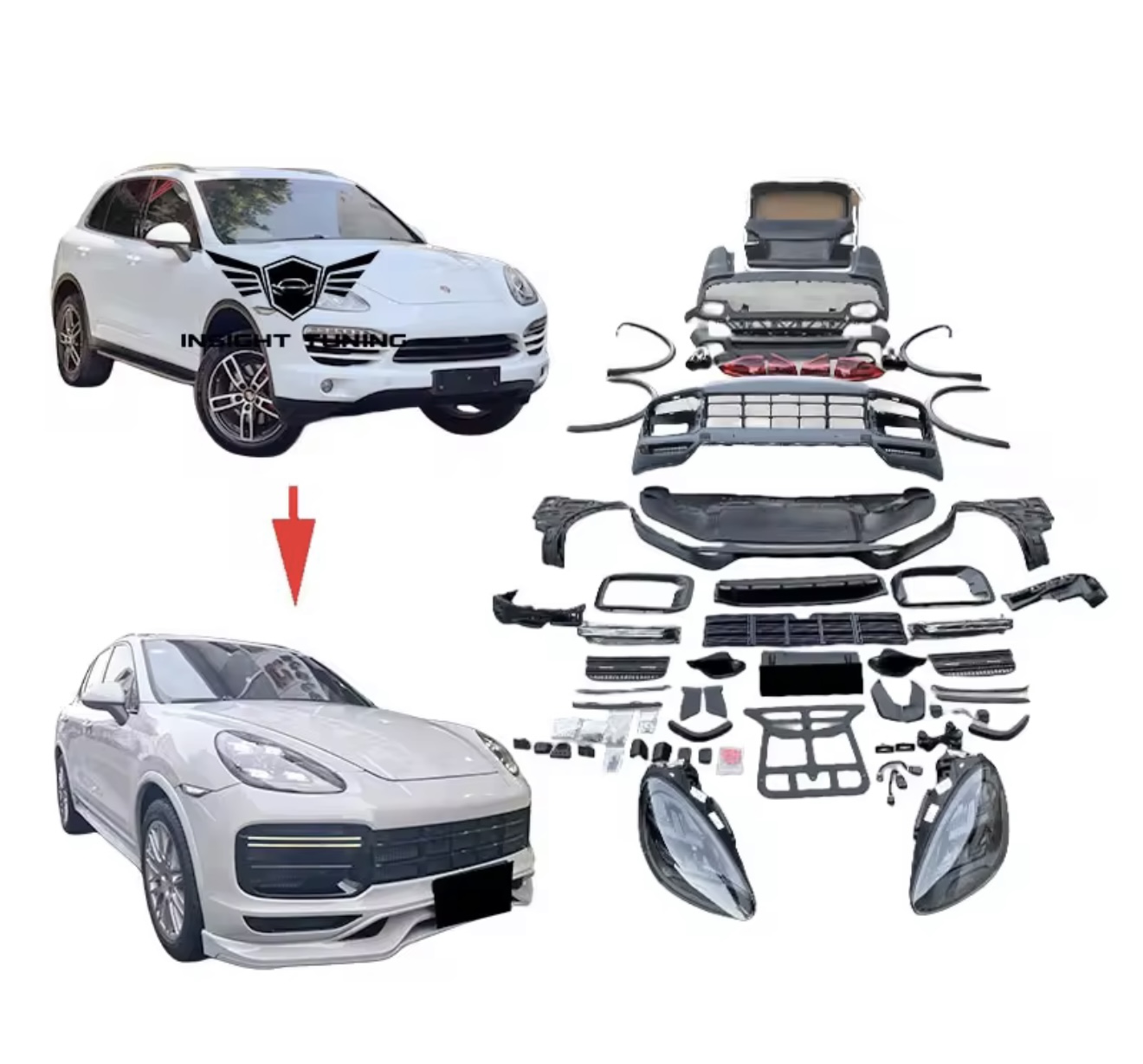 รับแปลงโฉม Porsche Cayenne 958.1 Upgrade to 958.2 Rear Kit Tailgate 2018 9YO Turbo S Front Facelift Bodykit Car Conversion for Porsche Cayenne