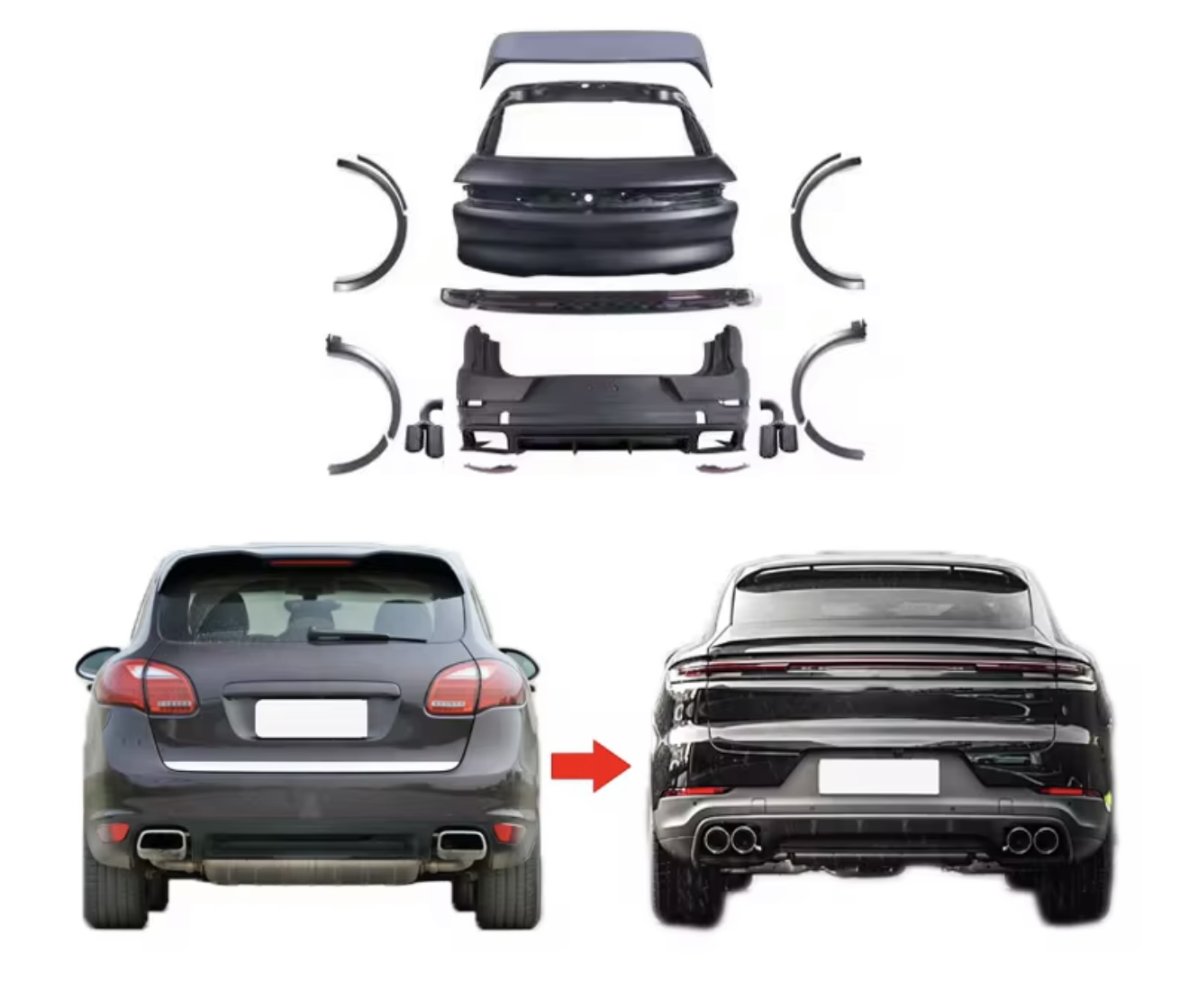 รับแปลงโฉม Porsche Cayenne 2011-2014 958 958.1 Front Bumper Bodykit Upgrade To 2024 2025 Turbo Style Body Kits Headlights For Porsche Cayenne